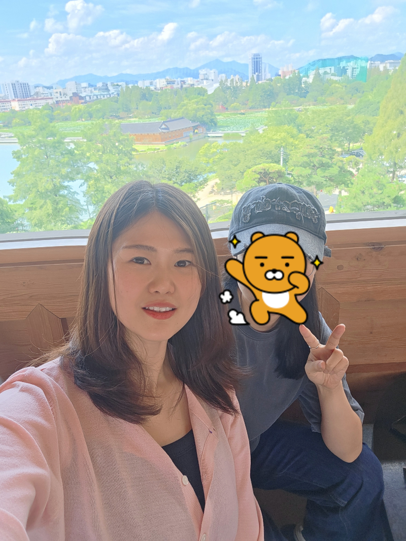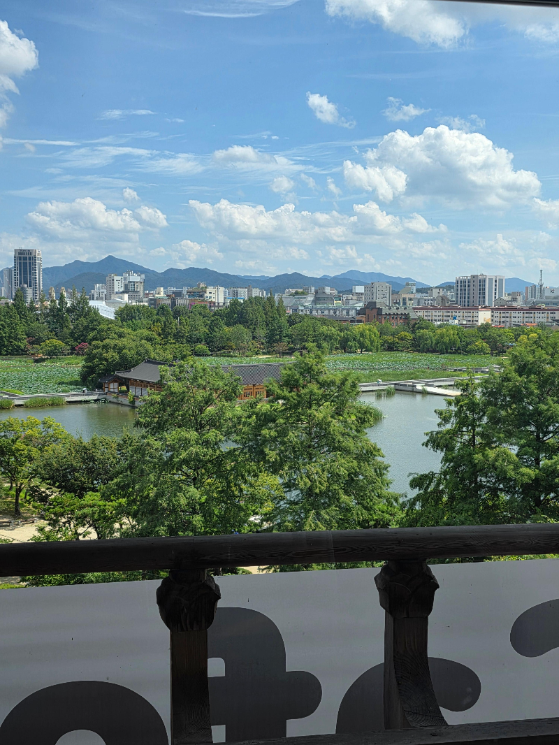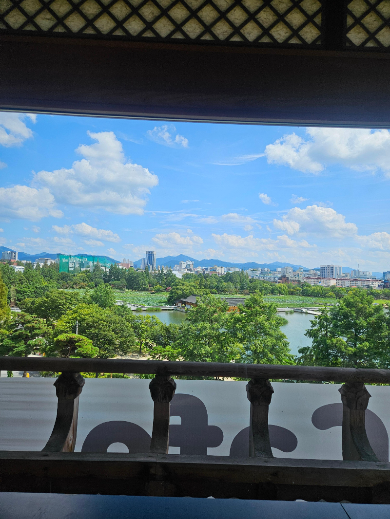 무엇보다 통창으로 보이는 덕진공원 뷰가 압권이었어요. 연못에 피어있는 연꽃들이 한 폭의 그림 같더라고요.