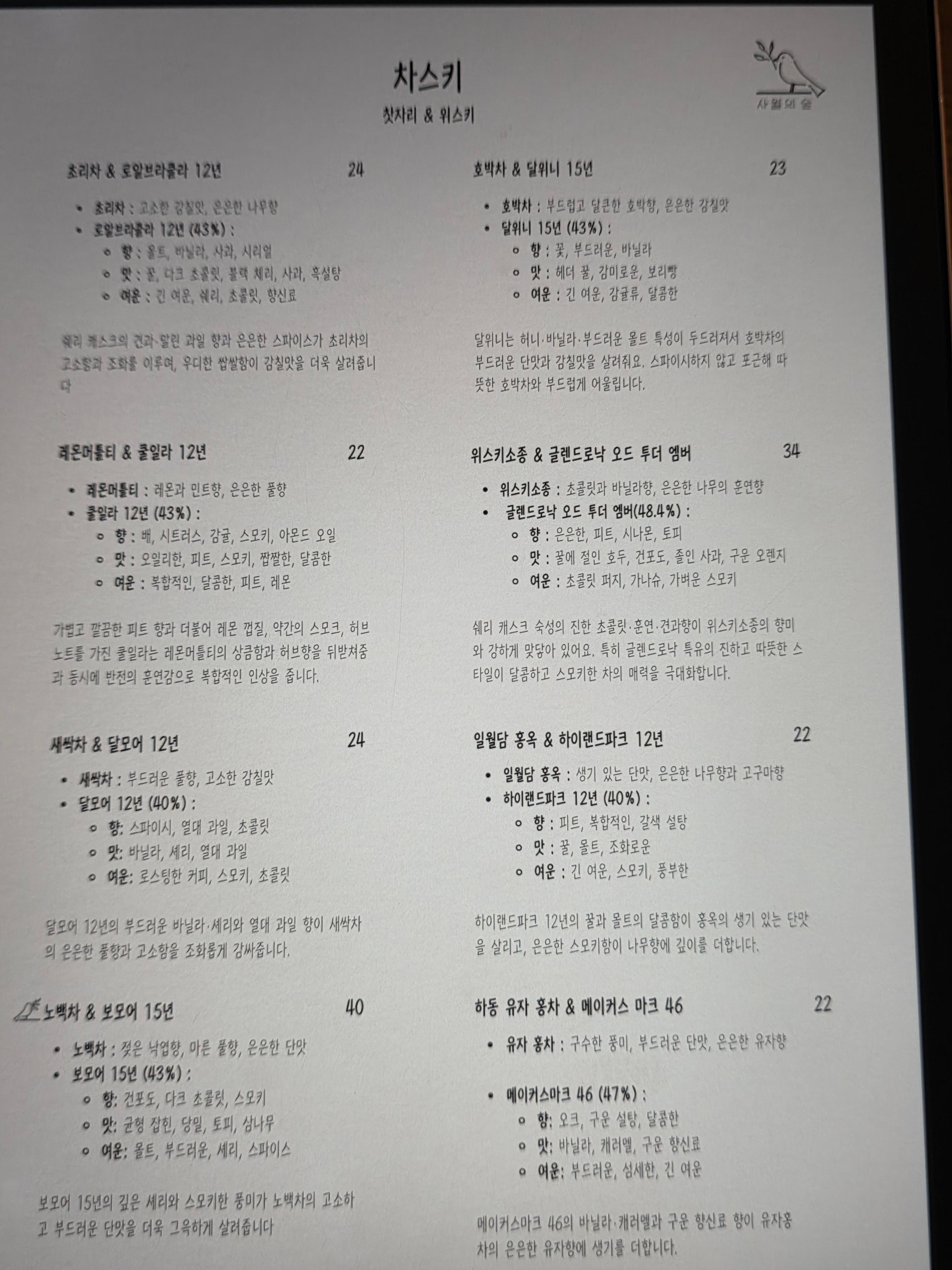 무엇보다 이번에 함께한 선생님 덕분에 이곳을 알게 되어 더 감사했어요. 제게는 또 하나의 아지트가 생긴 기분이었답니다. 혼자 오기에도, 누군가와 함께하기에도 완벽한 곳. 재방문 의사 100% 확실합니다. 다음번엔 꼭 위스키 블라인드 코스까지 도전해보려고요.