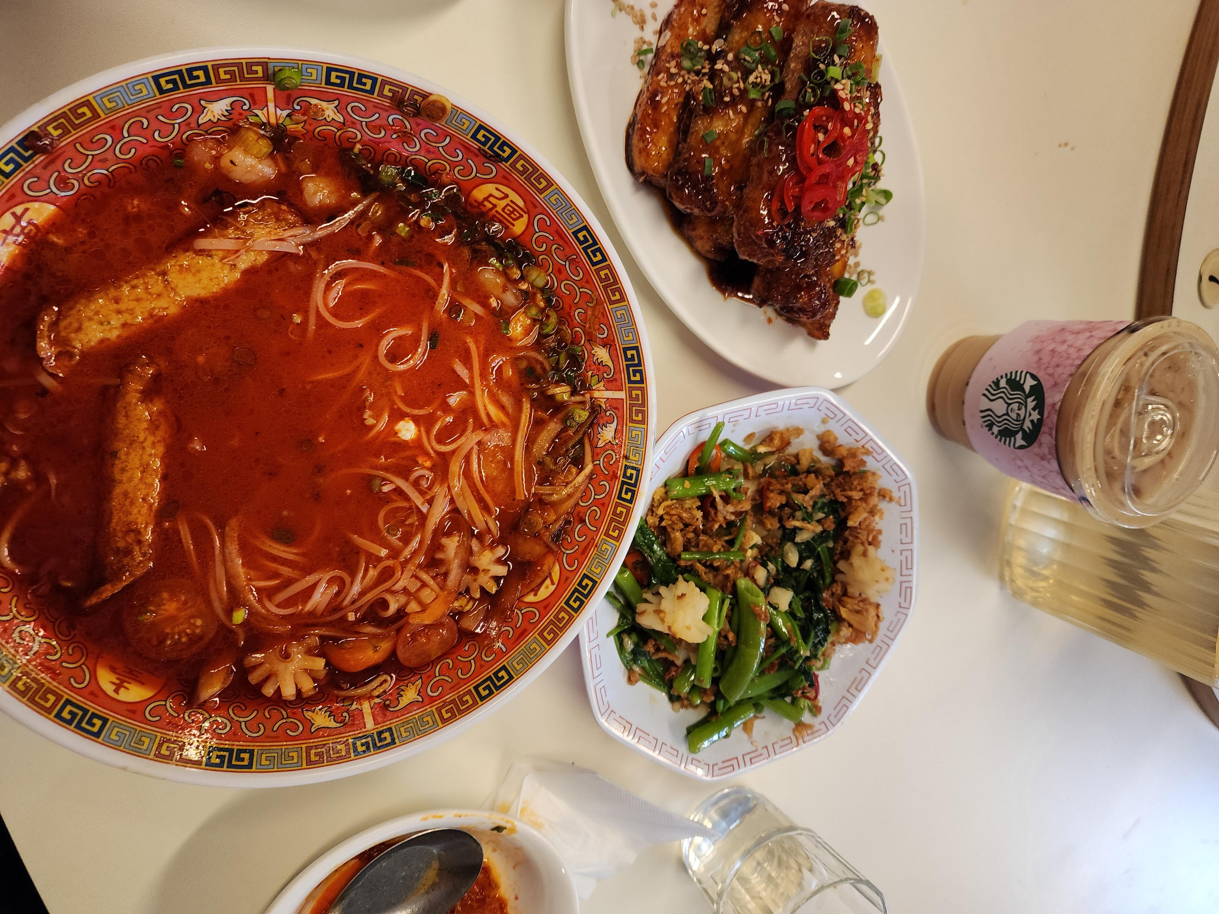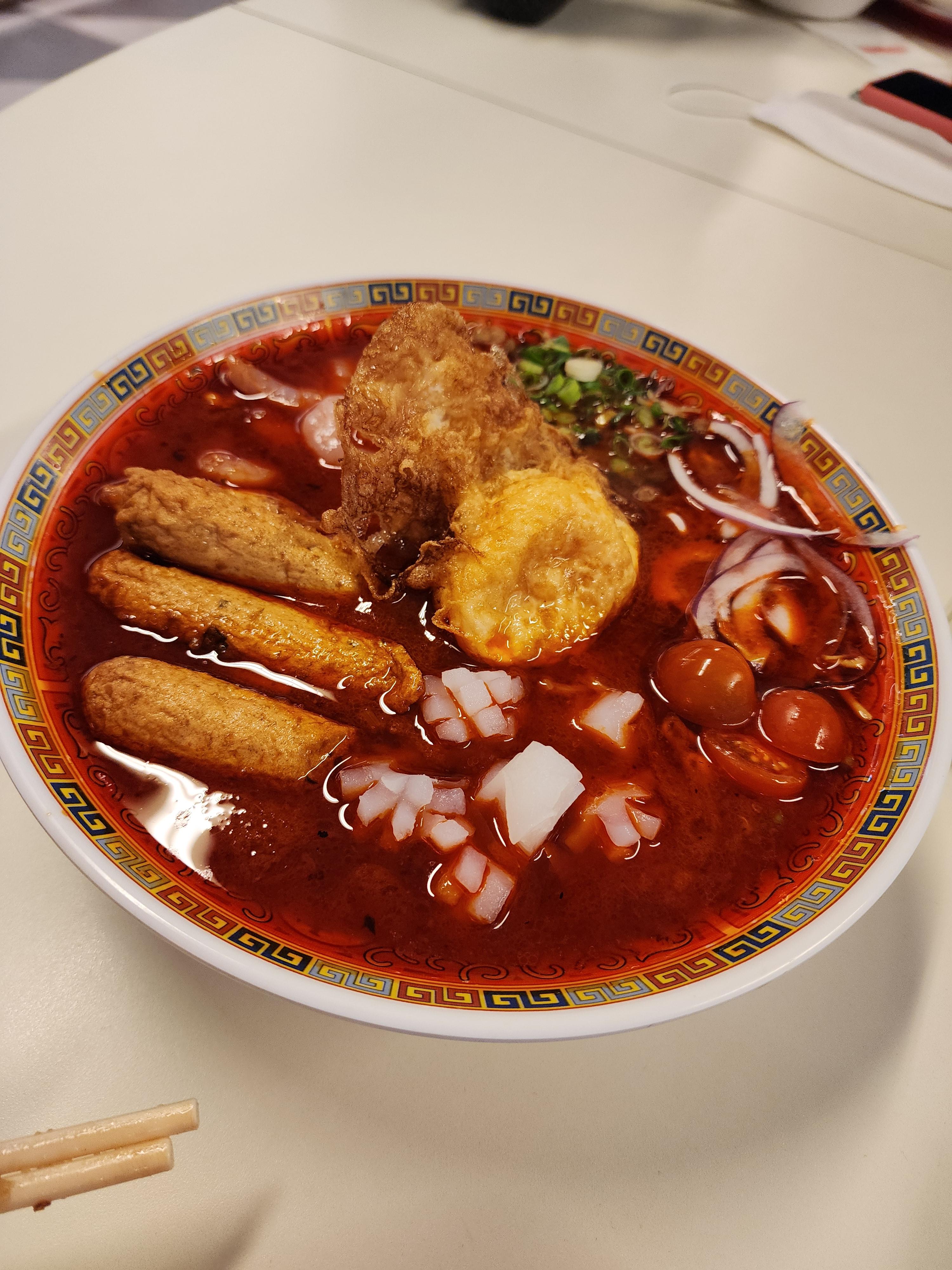 먹다 보면 은근히 땀이 나는데, 그게 또 해장 느낌으로 좋더라고요. 국물이 깊고 감칠맛이 살아있어서 면이랑 새우, 어묵, 야채 모두 완벽한 조화! 매운 음식 좋아하는 분들께 진짜 강추입니다. 면은 쌀국수 느낌인데 탱탱해서 식감이 좋아요.