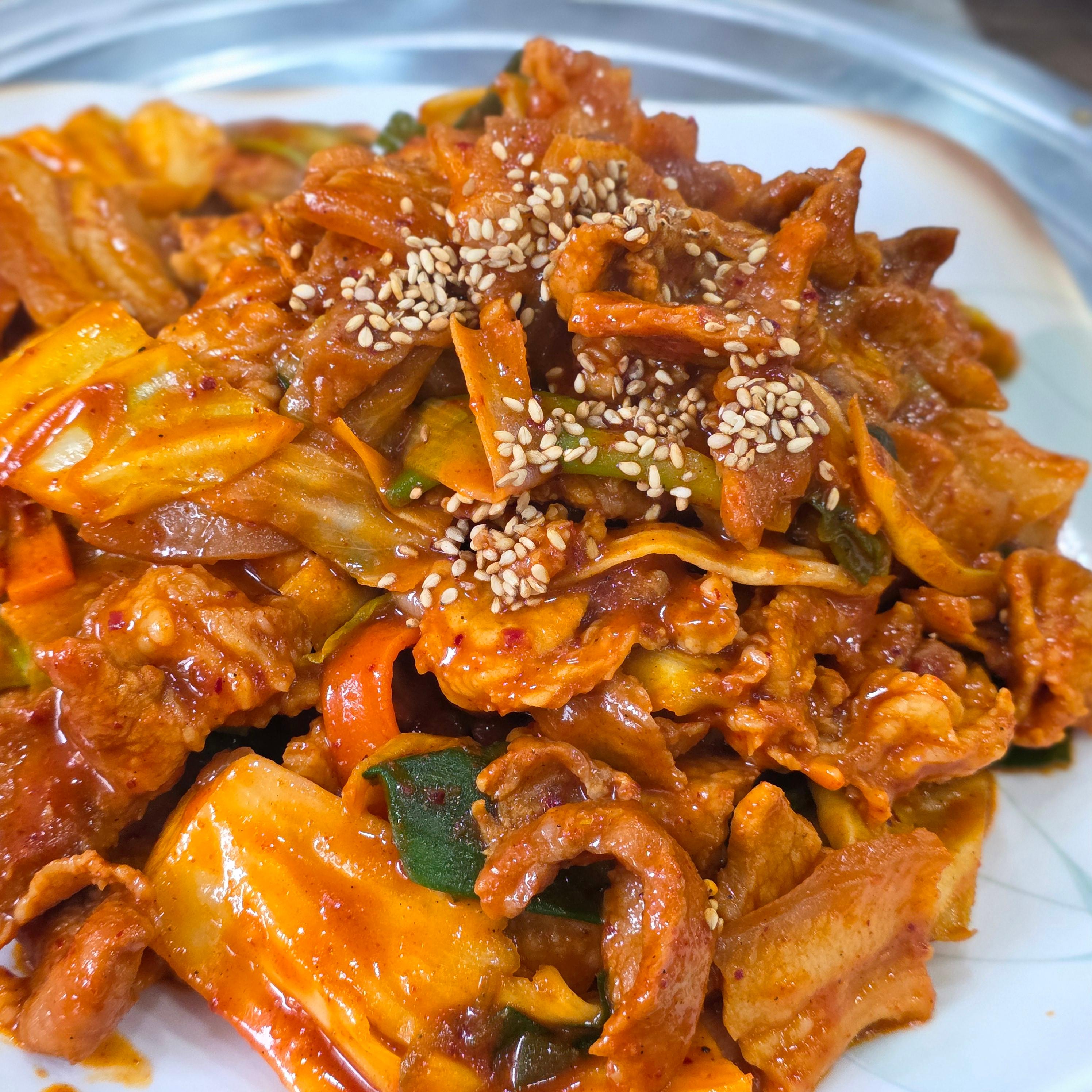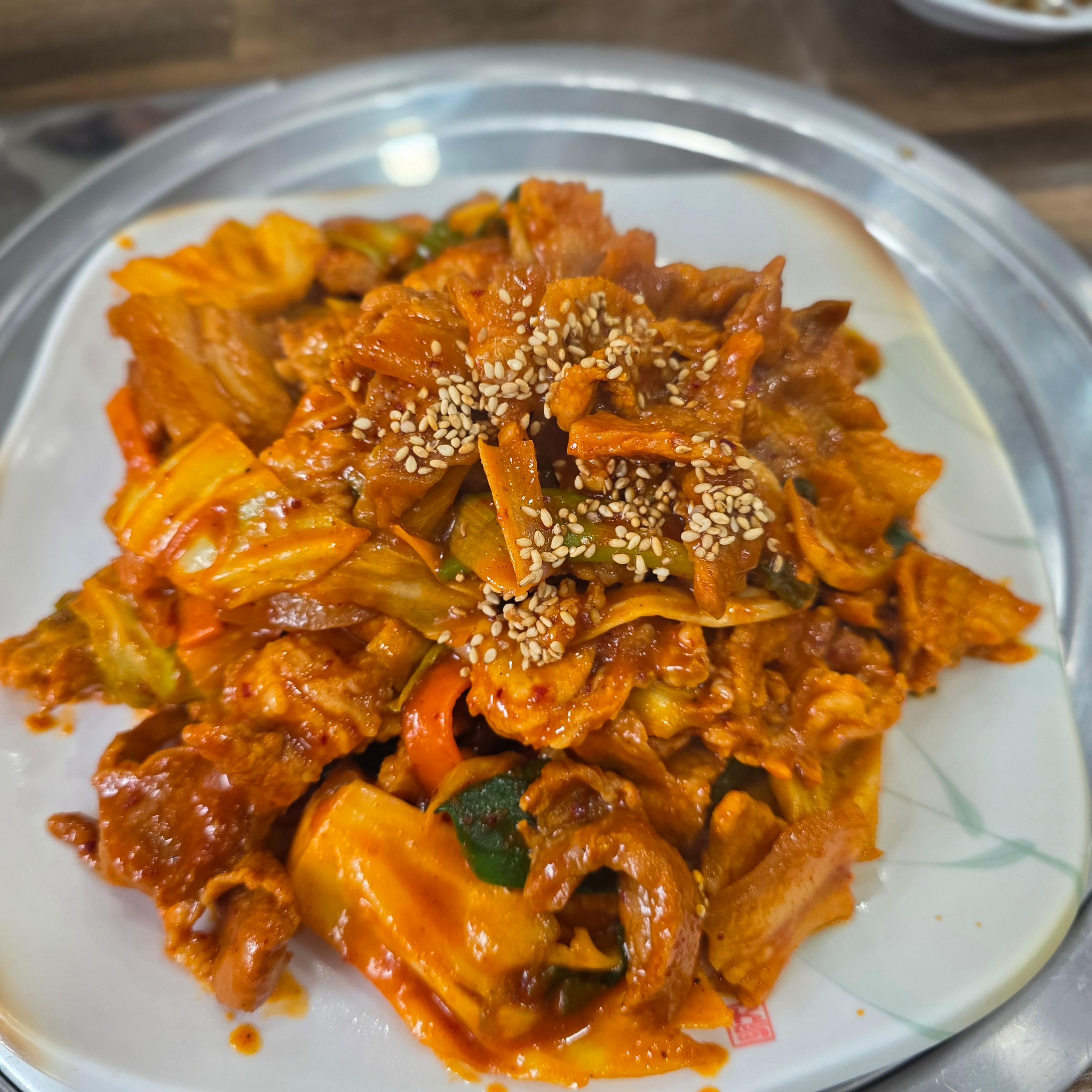 메인인 제육볶음은 정말 ‘밥 도둑’이라는 말이 딱이에요. 제육볶음은 고기가 얇지 않고 꽤 도톰해서 씹는 맛이 좋았어요.