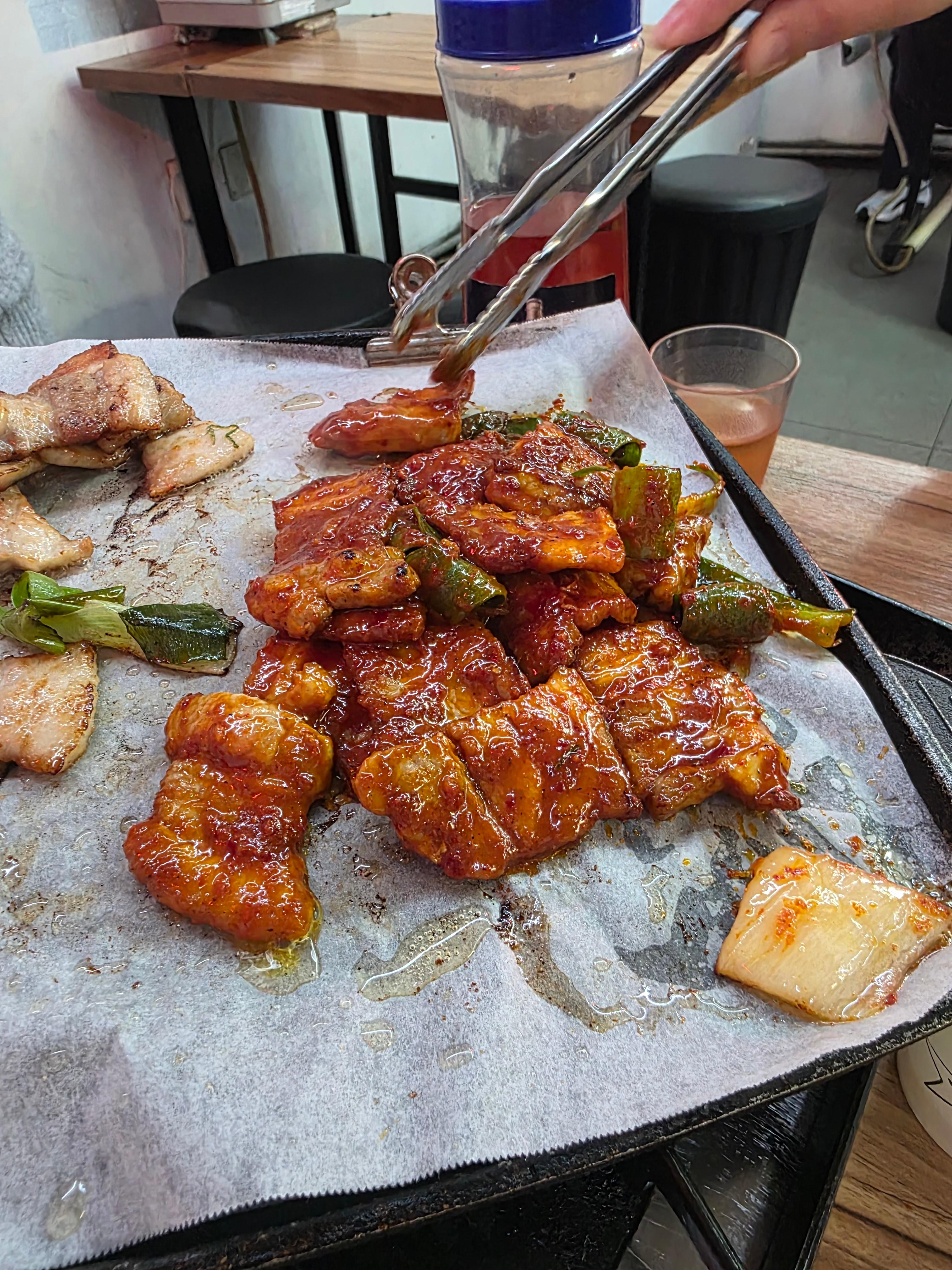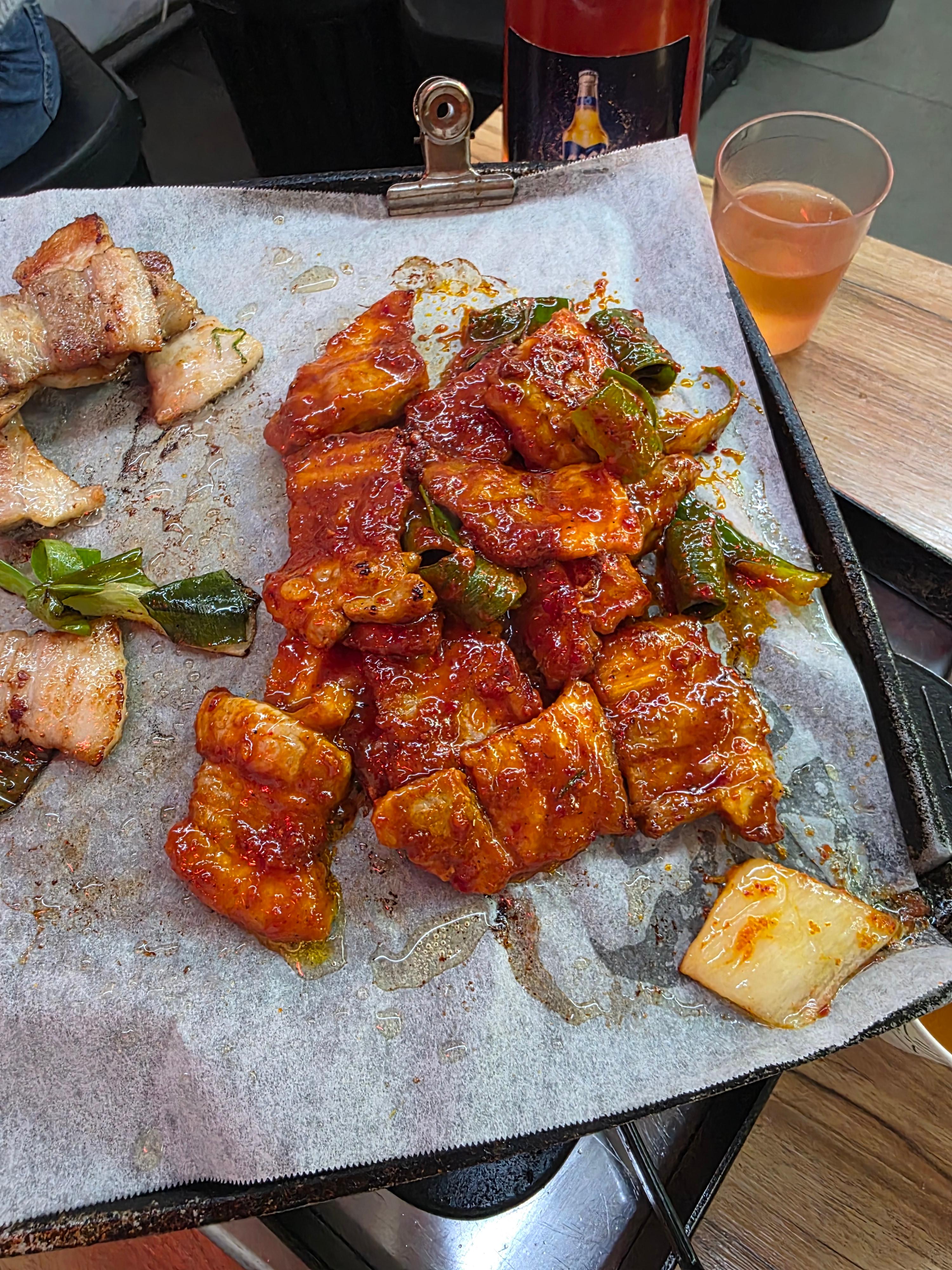 생삼겹살이 맛있어서 고추장삼겹살은 그냥 참고로 시켰는데…