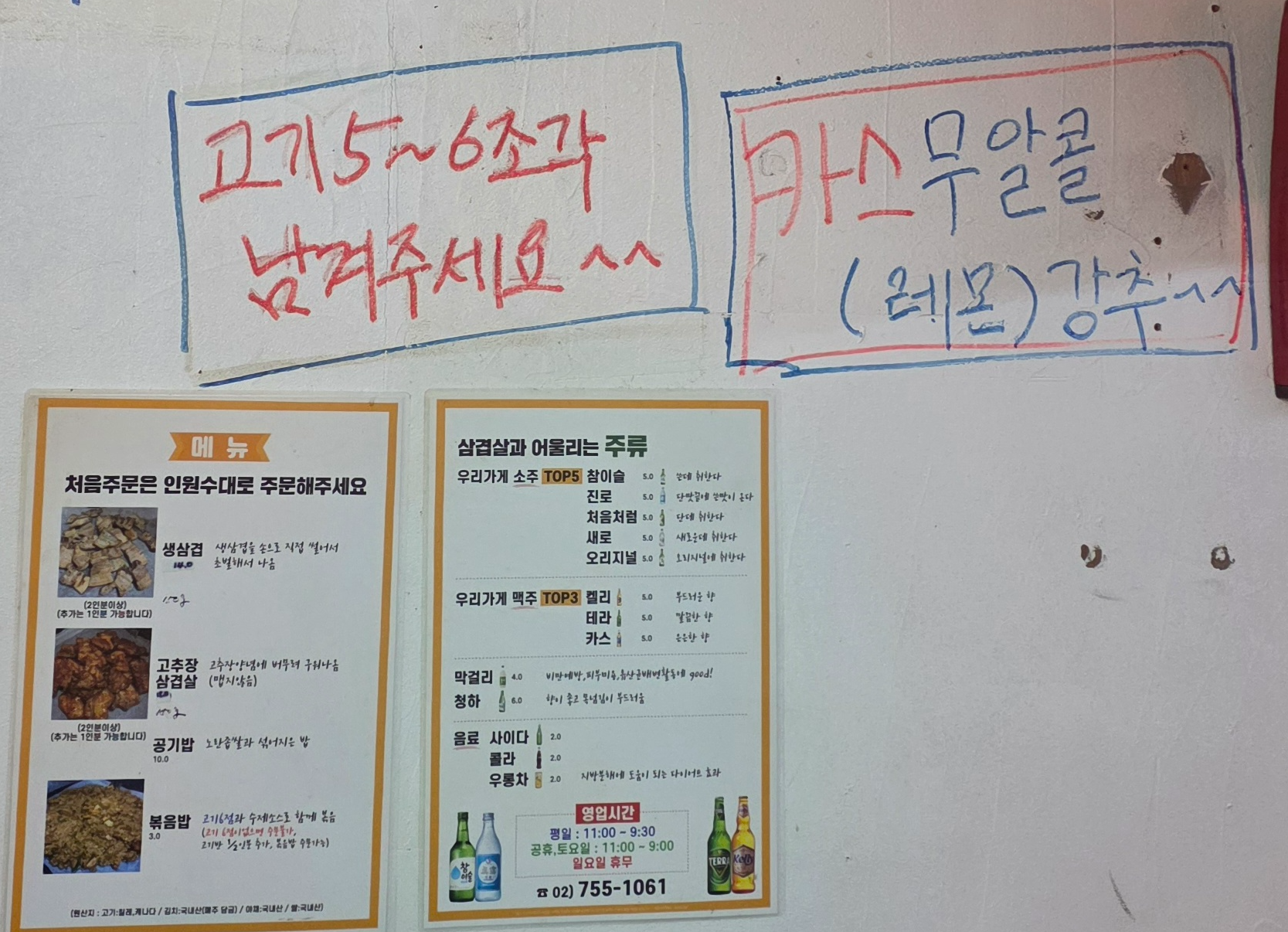 맛있는삼겹살 메뉴판 & 가격