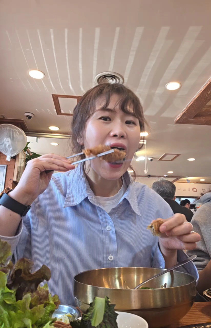 솔직히 이 쌈채소만으로도 여기 인기 이유를 알겠어요. 고기 올리고 보리밥 올려서 한입! 진짜 소리도 없이 사라져요.