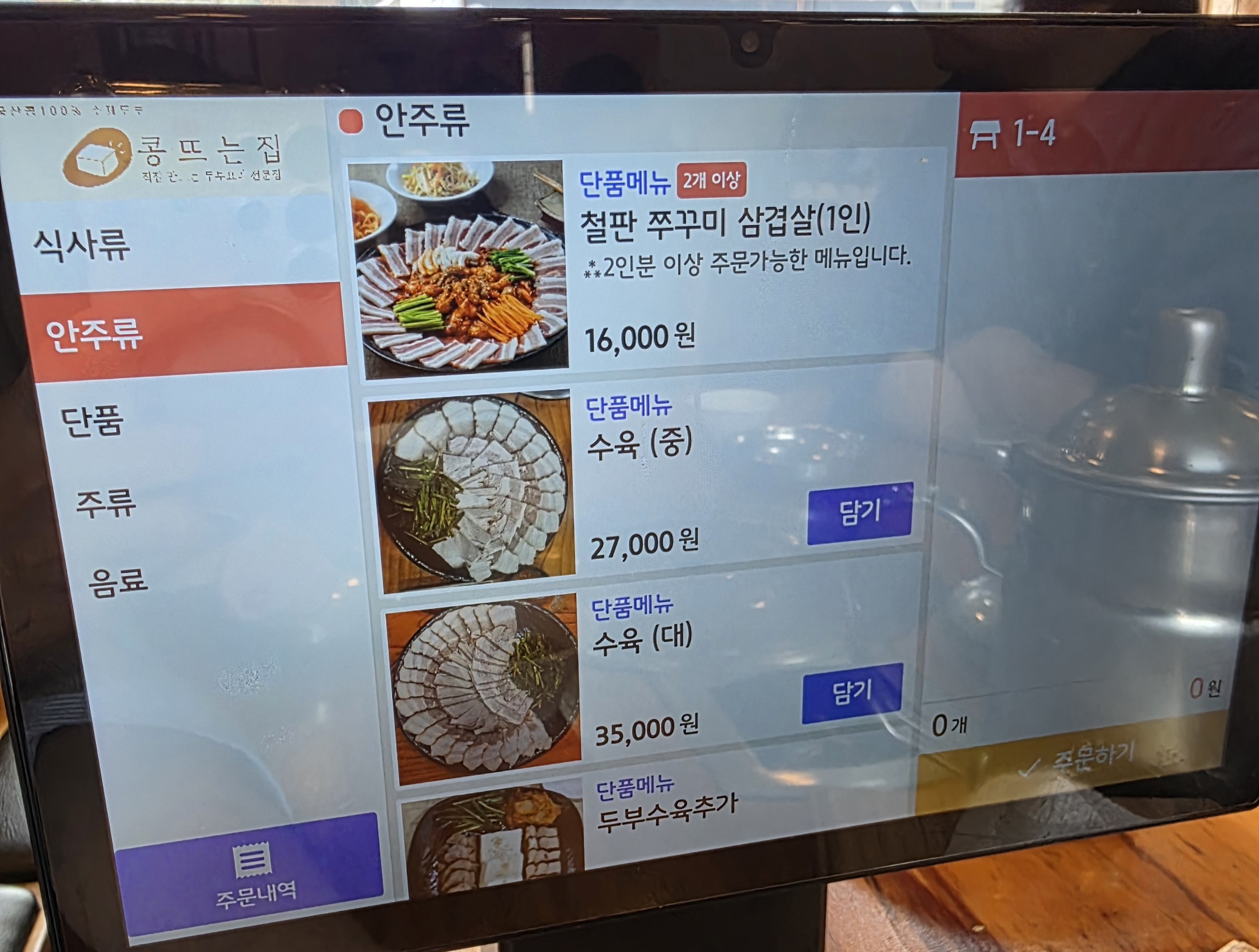 저희가 주문한 건 수육퉁퉁장 정식 3인