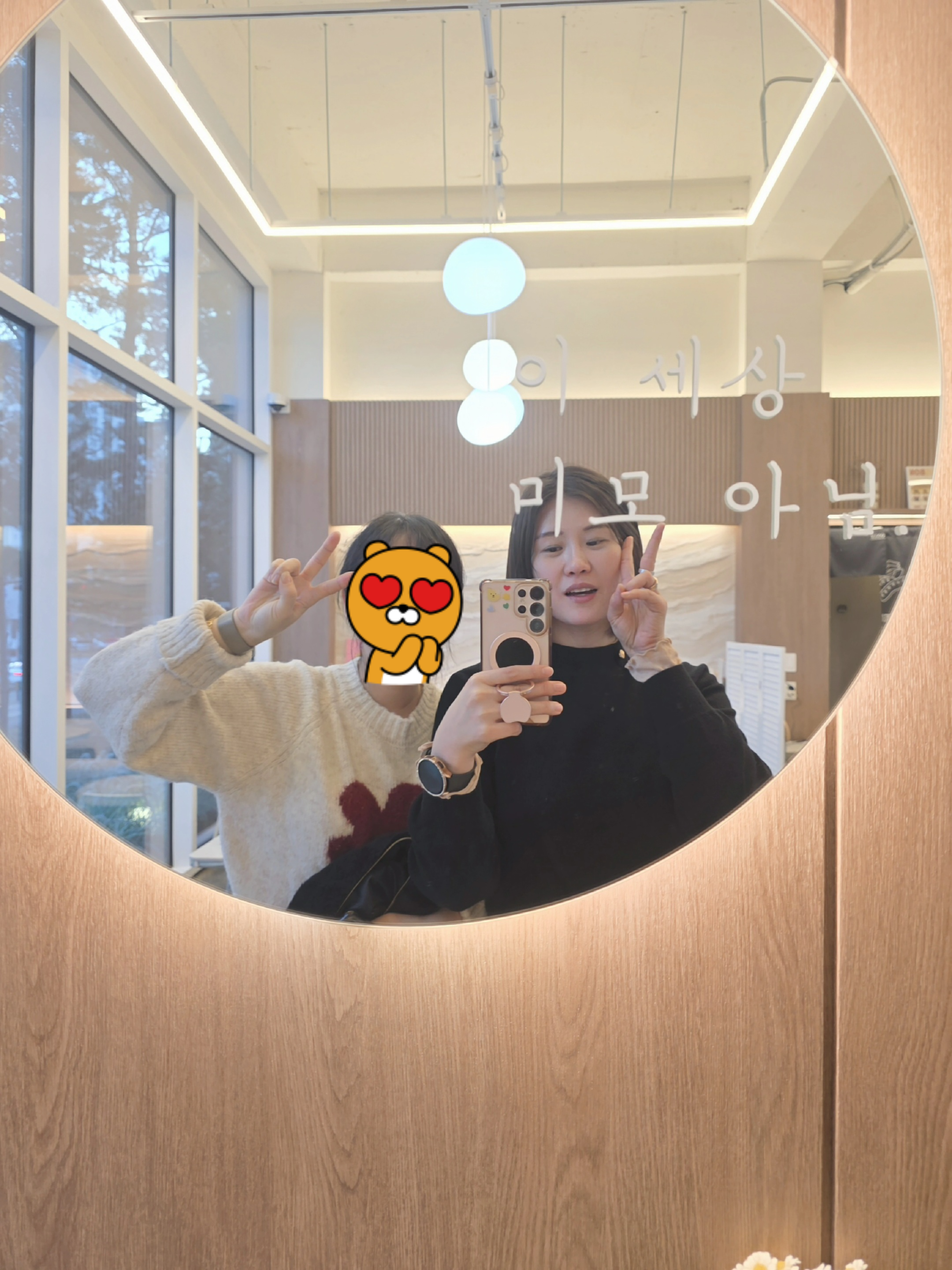 그리고 제가 또 거울샷 좋아하잖아요ㅎㅎ 거울존이 따로 있어서 어플 사용해서 열심히 찍었어요.