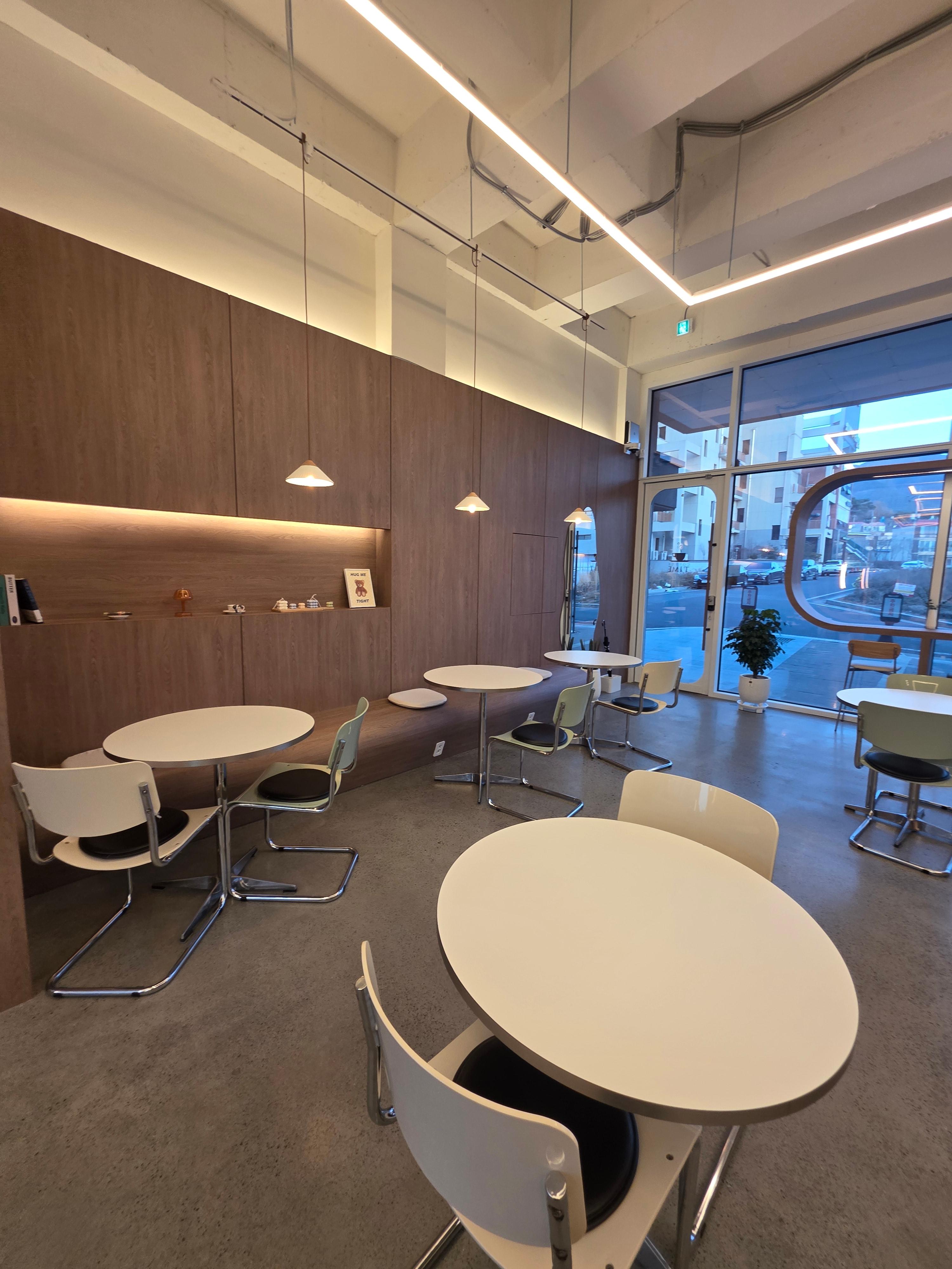 우드톤 인테리어에 따뜻한 조명, 군더더기 없이 깔끔한 공간이라서 요즘 감성 제대로입니다.