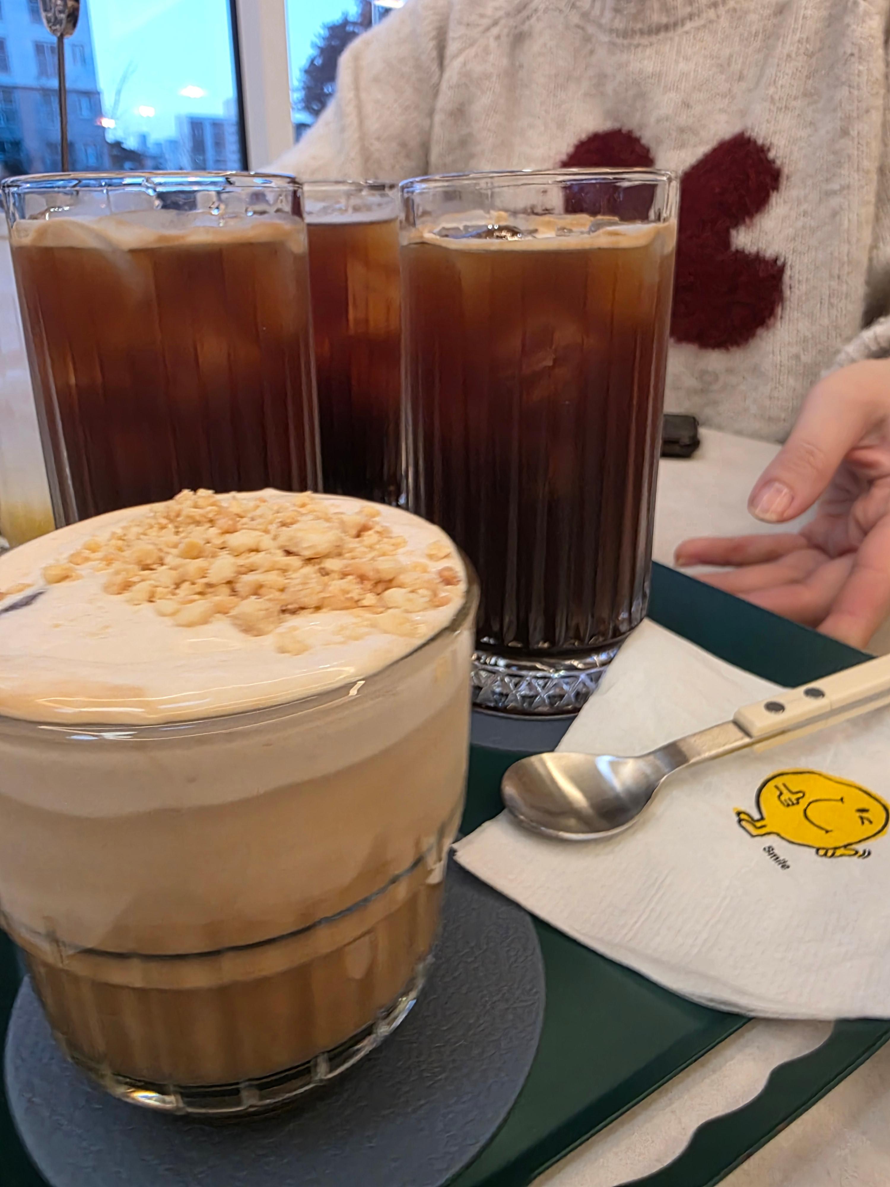 고소한 땅콩버터 베이스에 카라멜소스, 생크림이 더해진 너티한 풍미의 라떼입니다. 완전 많이 달지 않고, 적당히 달면서 고소함이 확 올라와요. 개인적으로 제 스타일이었어요. 진짜 또 생각나요.