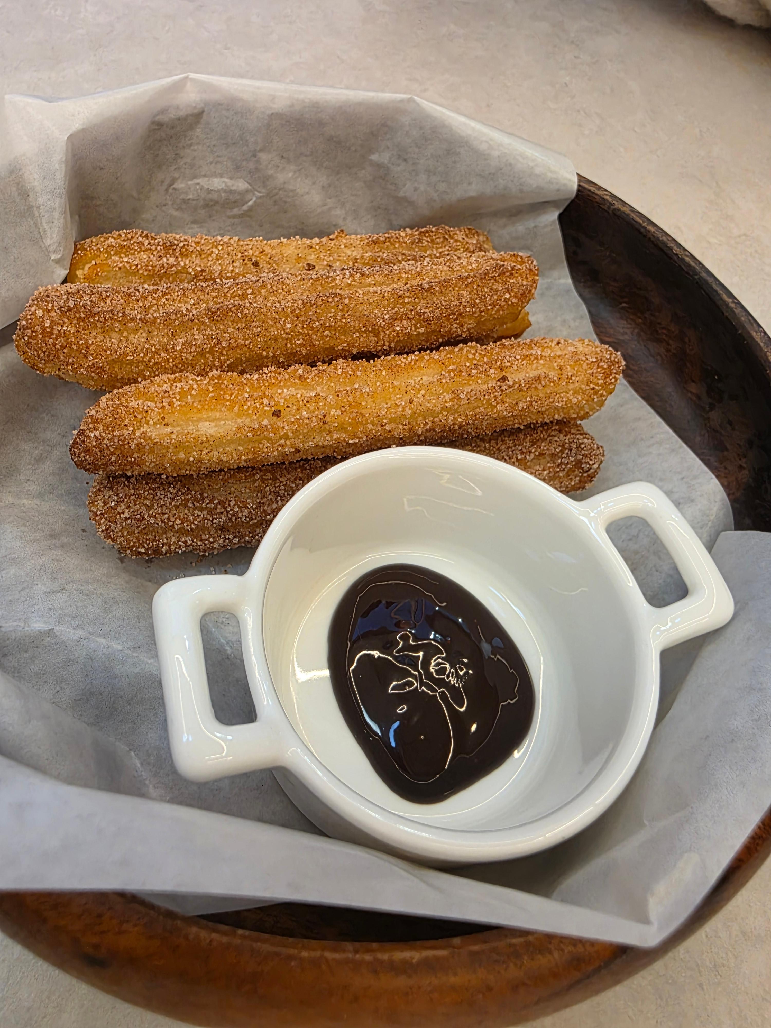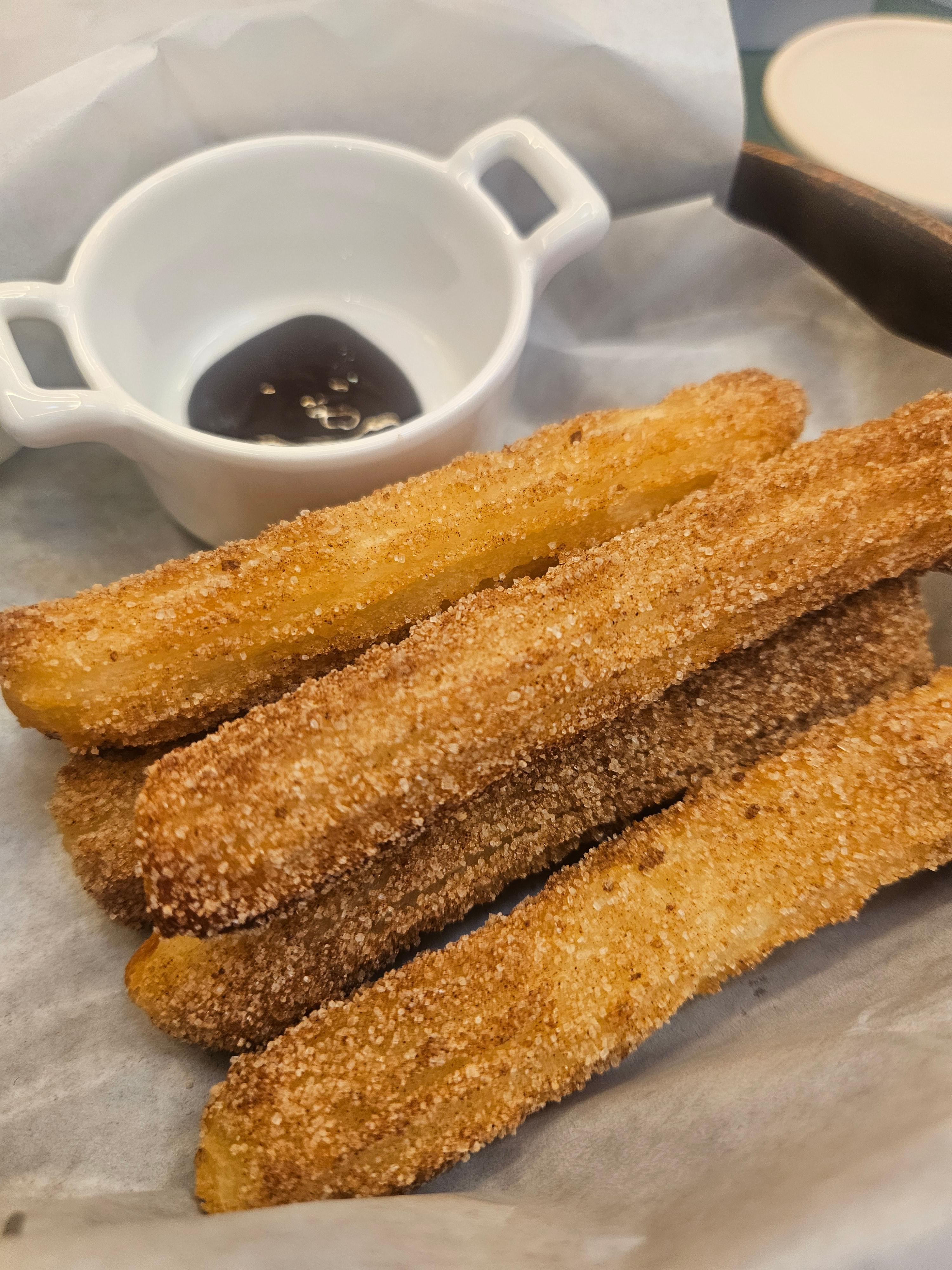 겉바속촉의 정석. 초코시럽까지 함께 나와서 찍어 먹으면 그냥 끝입니다. 안 맛있을 수가 없죠? 달달함 좋아하시는 분들께 강력 추천이에요.