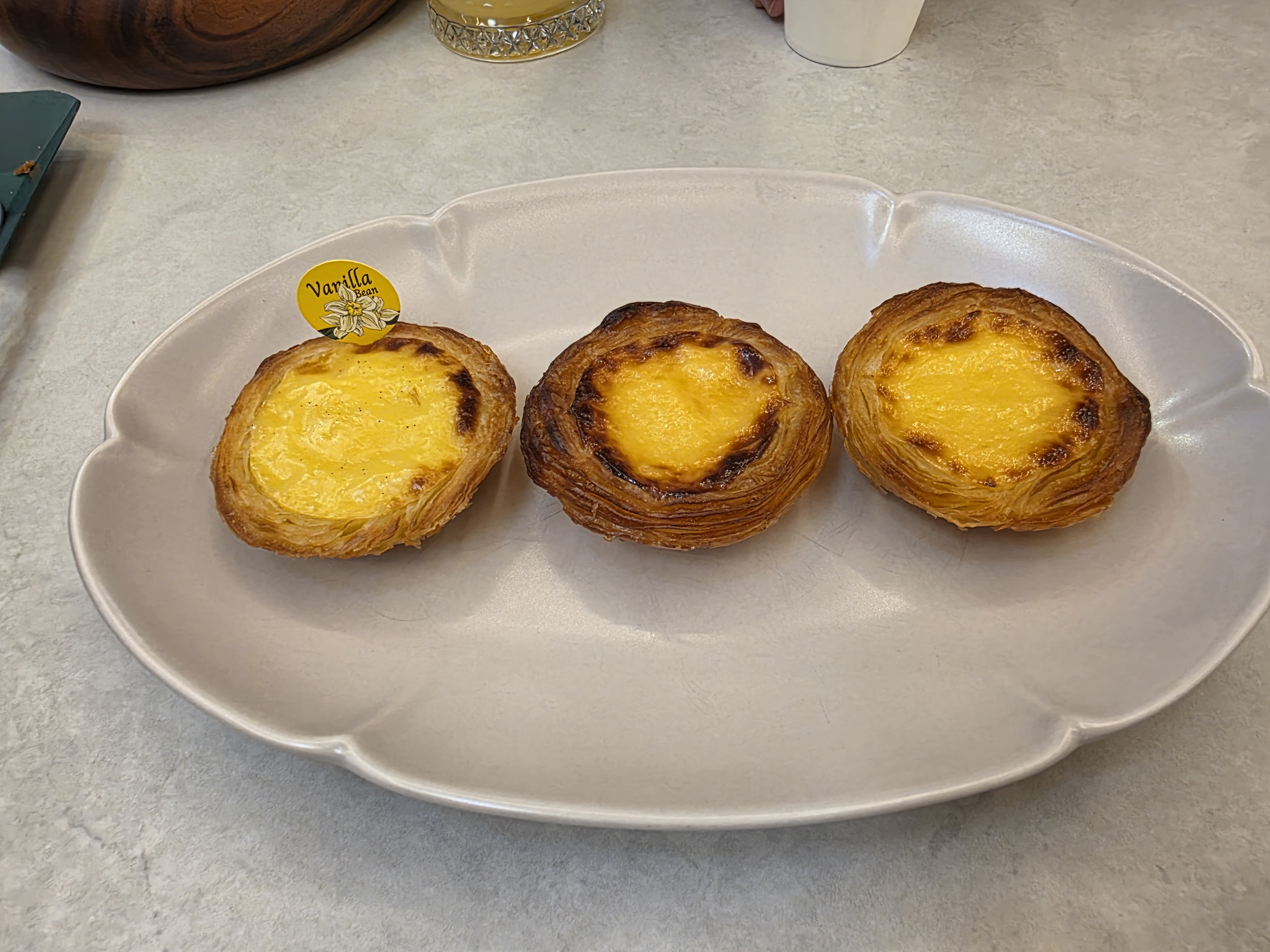 에그타르트는 남은 수량이 없어서 바로 만들어주셨는데, 갓 구운 상태로 받아서 더 기대됐어요.