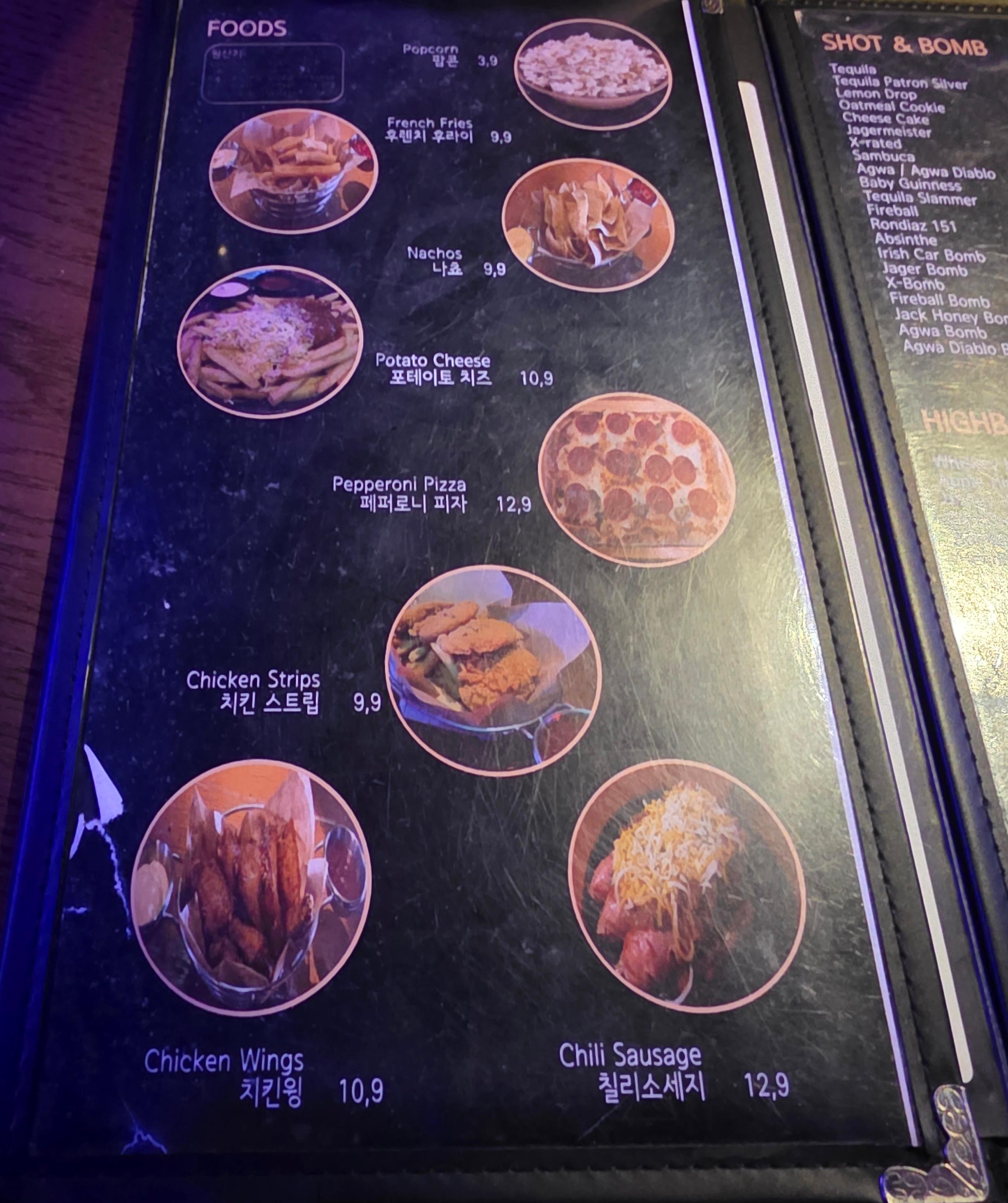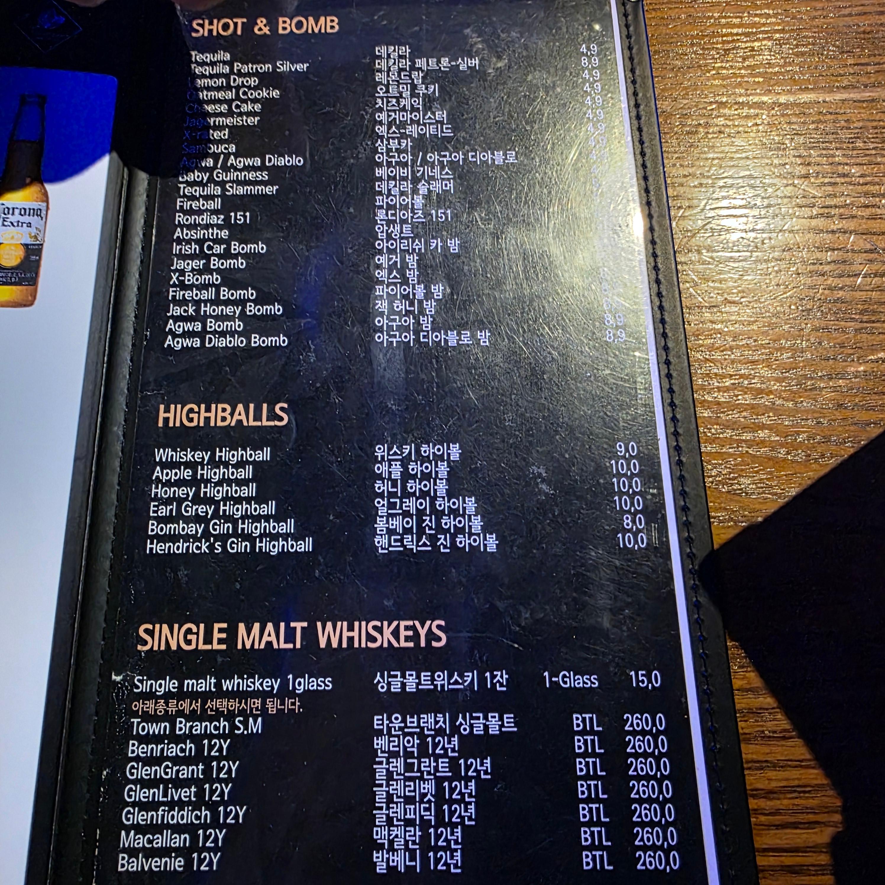 여기사진에는 없지만 다양한 맥주 그리고 위스키 그리고 샷으로도 팔고 진짜 다양하더라구요.
