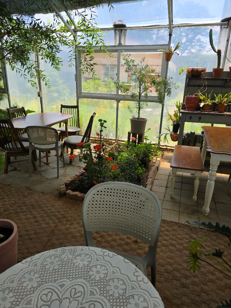 ✔️ 비닐하우스 구조의 실내 공간은 에어컨이 잘 되어 있어서, 더울 땐 실내에서 쉴 수 있어요.