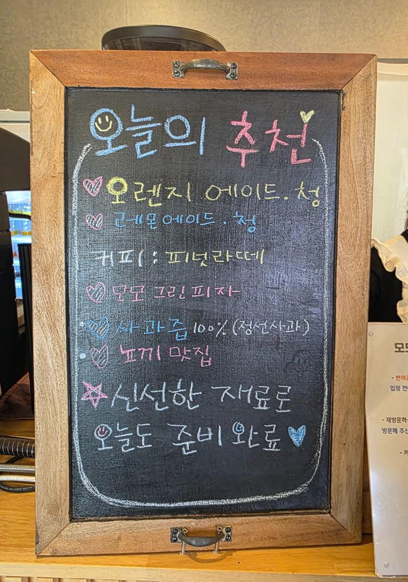 매일 추천하는 요리들이있더라구요. 하지만 저희는 밥을 많이 먹고 와서 커피만 시켰답니다.
