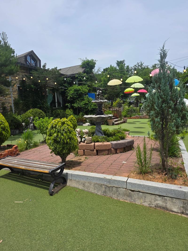 처음 도착했을 때 가장 먼저 눈에 들어온 건 넓은 야외 정원이었어요.