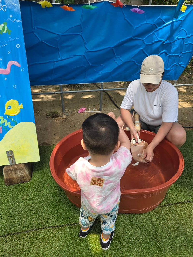 ✔️ 물놀이&모래놀이하는데 씻는 곳 마련(물줄기 셈)