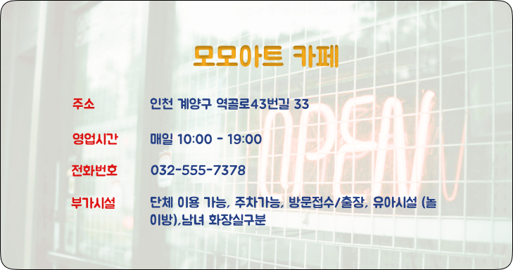 오늘은 인천 계양구에 위치한 모모아트(MOMO ART) 에 다녀온 후기를 공유드려요.