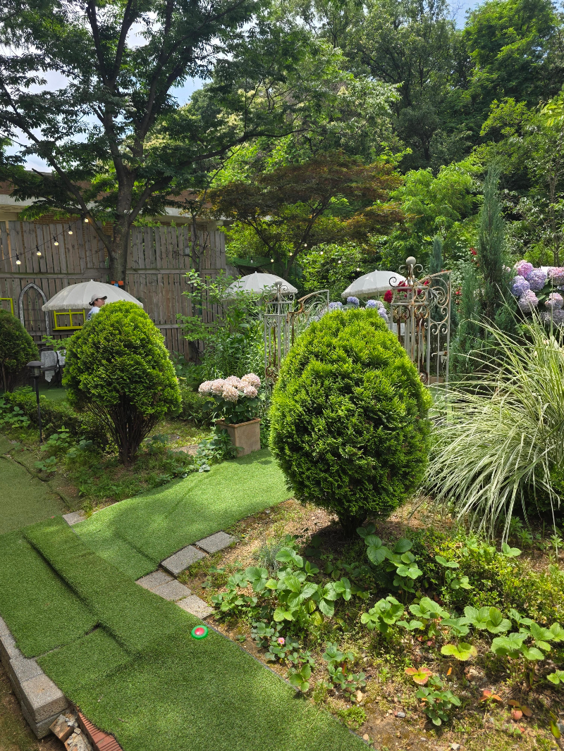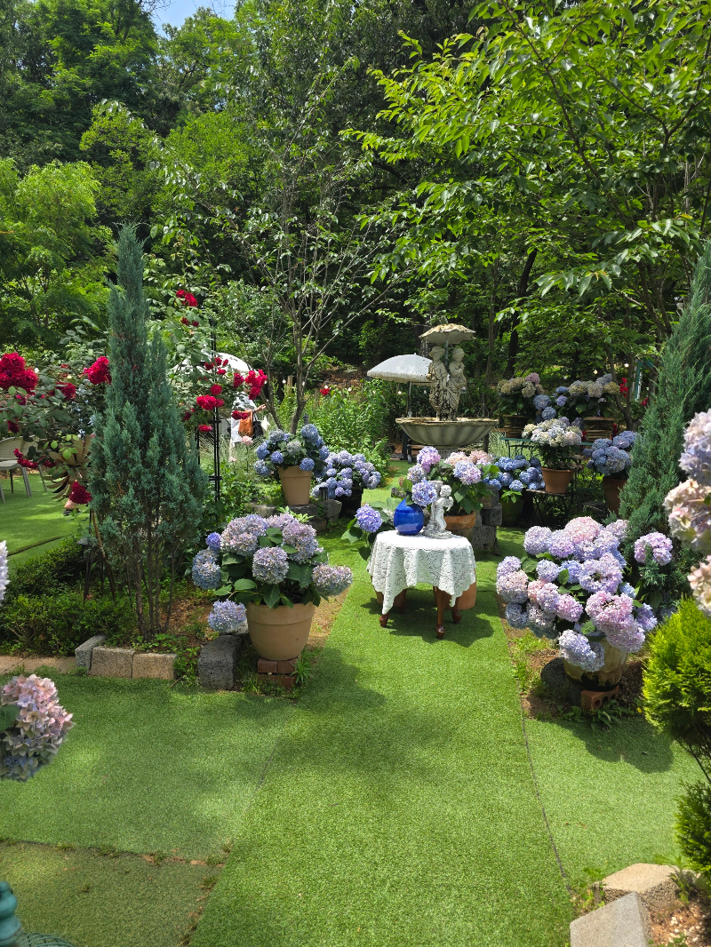 수국 정원이나 나무 숲길, 테이블 주변 포토존이 너무 예뻐서 정말 인생샷 찍기 딱 좋았어요.