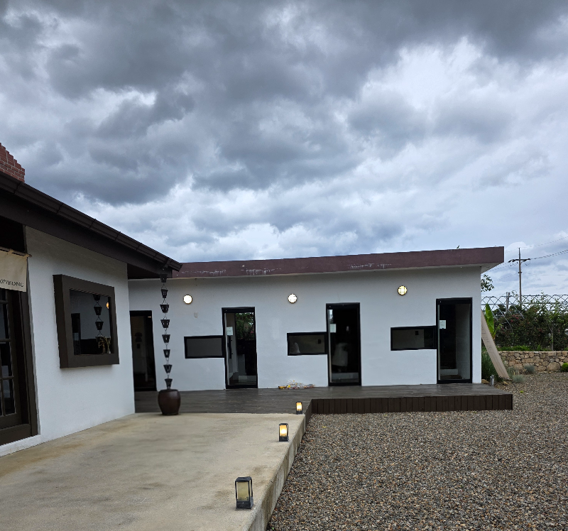 구옥 특유의 따뜻함과, 비 오는 날 창밖 풍경까지 더해지니 말 그대로 힐링 그 자체였어요.