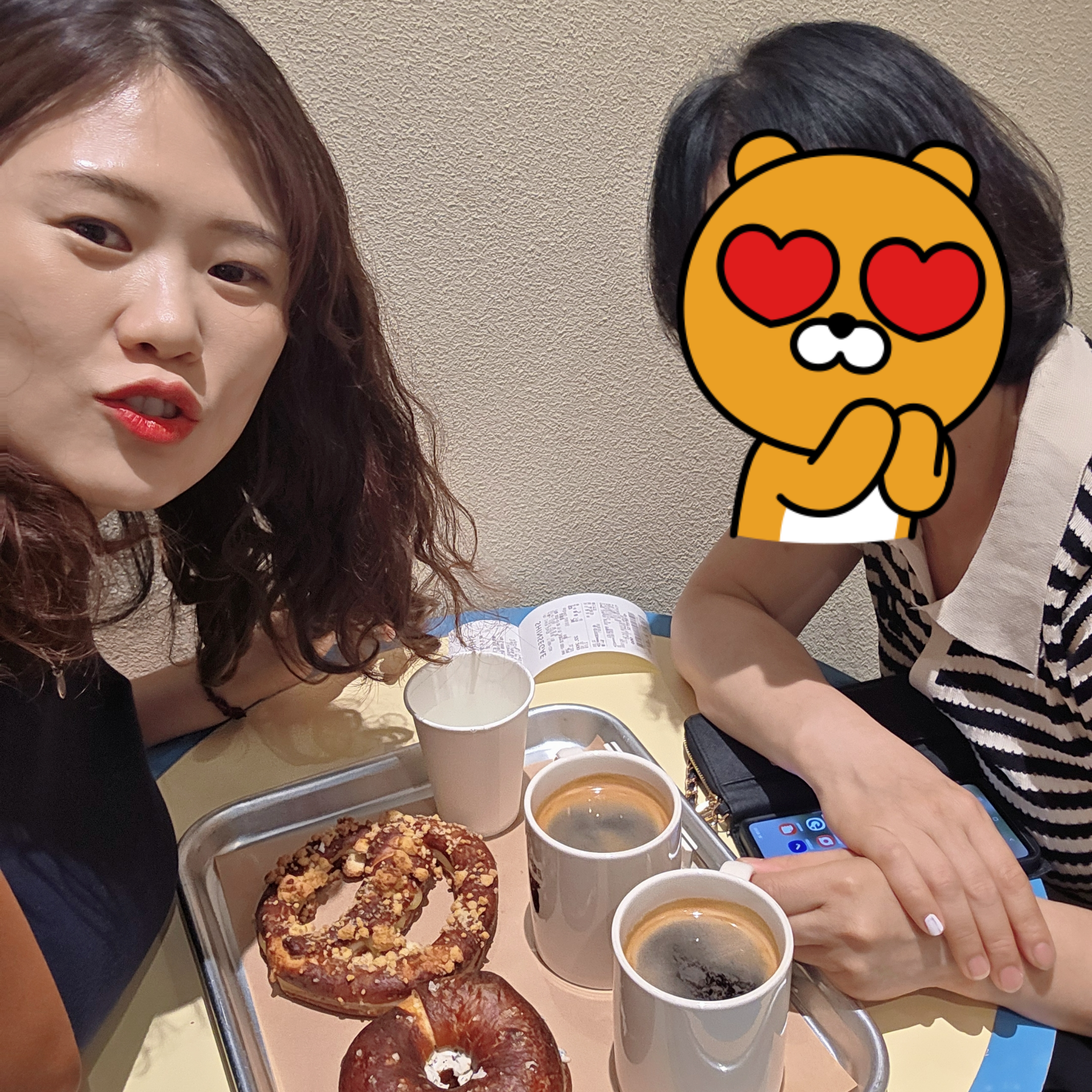 오랜만에 엄마랑 둘이 조용히 앉아 여유롭게 빵 하나, 커피 한 잔 나누며