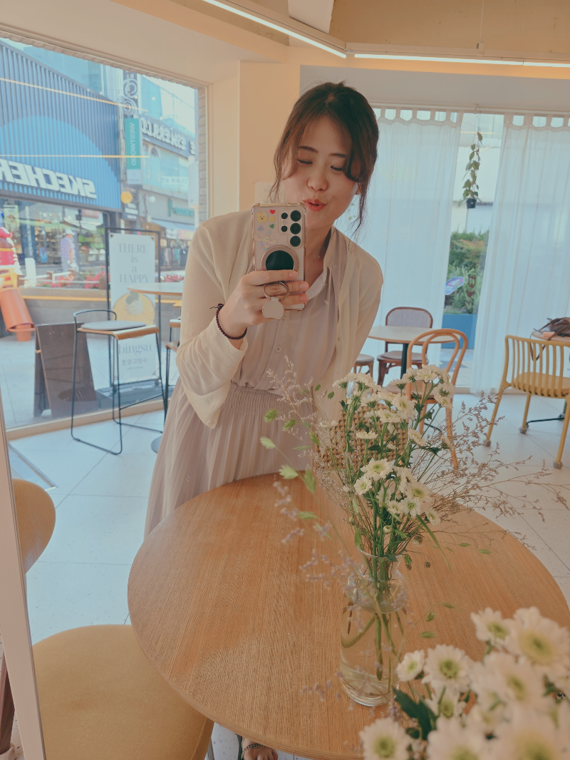 그리고여기는 인스타 감성이 폭발하는 포토존이에요. 통유리로 들어오는 햇살이 은은하게 퍼져서 사진이 정말 잘 나오더라고요. “오늘 여수에서 제일 예쁜 사진은 여기서!”ㅎㅎ 감성적인 사진을 많이 건졌어요.
