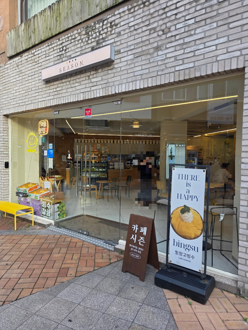 여수 여행 중, 너무 더워서 시원한 빙수가 간절했어요. 그때 눈에 띈 곳이 바로 여수 현지인들도 인정하는 시즌카페였답니다. 매장 앞에 박스로 가득 쌓인 생망고를 보는 순간, ‘여긴 진짜다!’라는 생각이 확 들었어요. 빙수나 주스에 들어가는 과일을 이렇게 직접 쌓아두고 쓰는 집이라니...신선함이 보장될 수밖에 없겠죠?